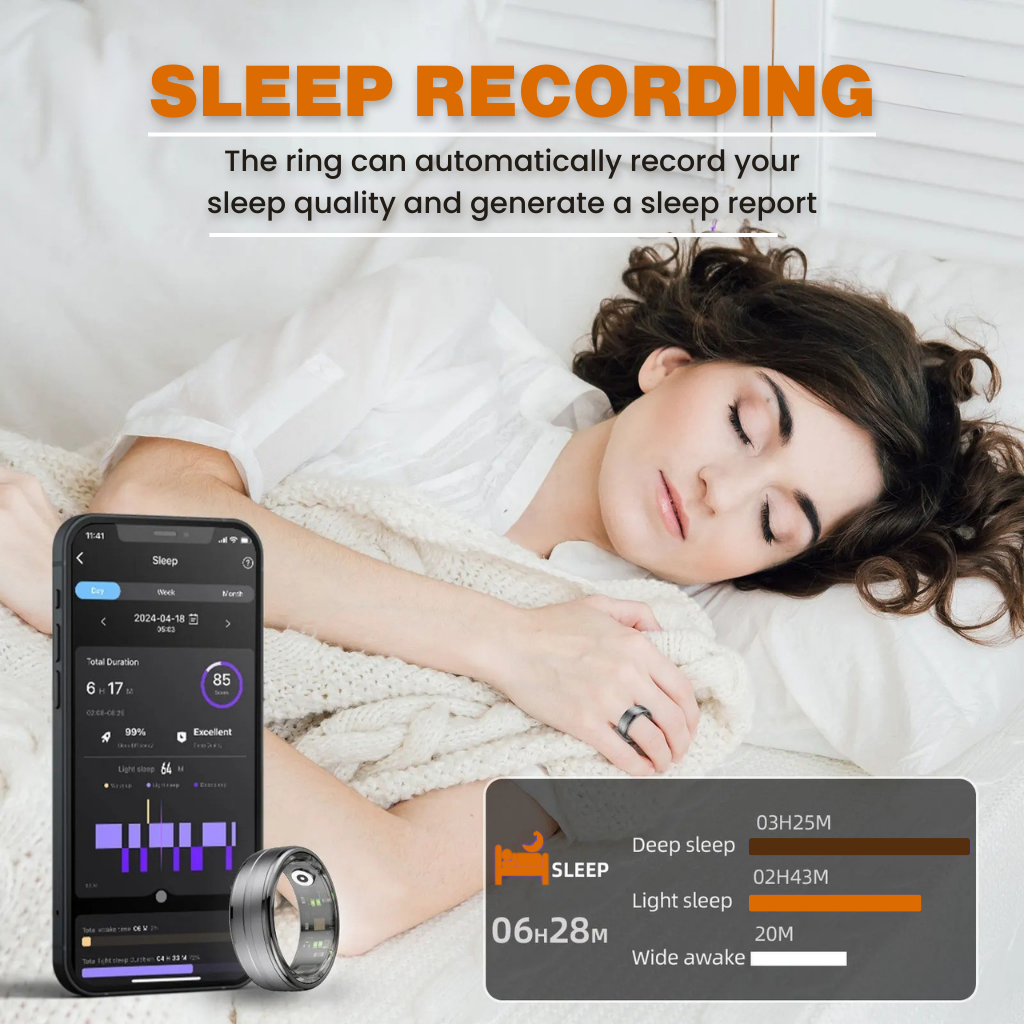 the R06 Smart Ring by UpgradeVibe—a sophisticated blend of innovation, health monitoring, and modern style. Designed for those who prioritize wellness and convenience, this sleek ring offers advanced tracking features that keep you informed about your body's vital signs.