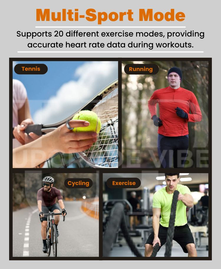 The UpgradeVibe R06 Smart Ring is designed for active lifestyles, Whether you're hitting the football field, cycling through nature, running on the track, or shooting hoops in basketball, this smart ring provides real-time heart rate monitoring and precise performance insights.