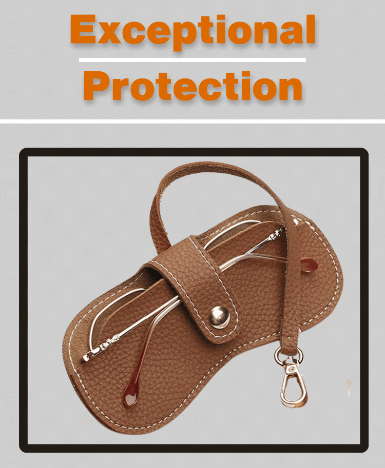 the Soft Leather Sunglasses Bag by UpgradeVibe—where luxury meets practicality. The soft, cushioned interior prevents scratches and absorbs shocks, safeguarding your lenses in style. This sophisticated case cradles your glasses in a velvety, scratch-resistant interior, offering unparalleled protection with a touch of elegance.